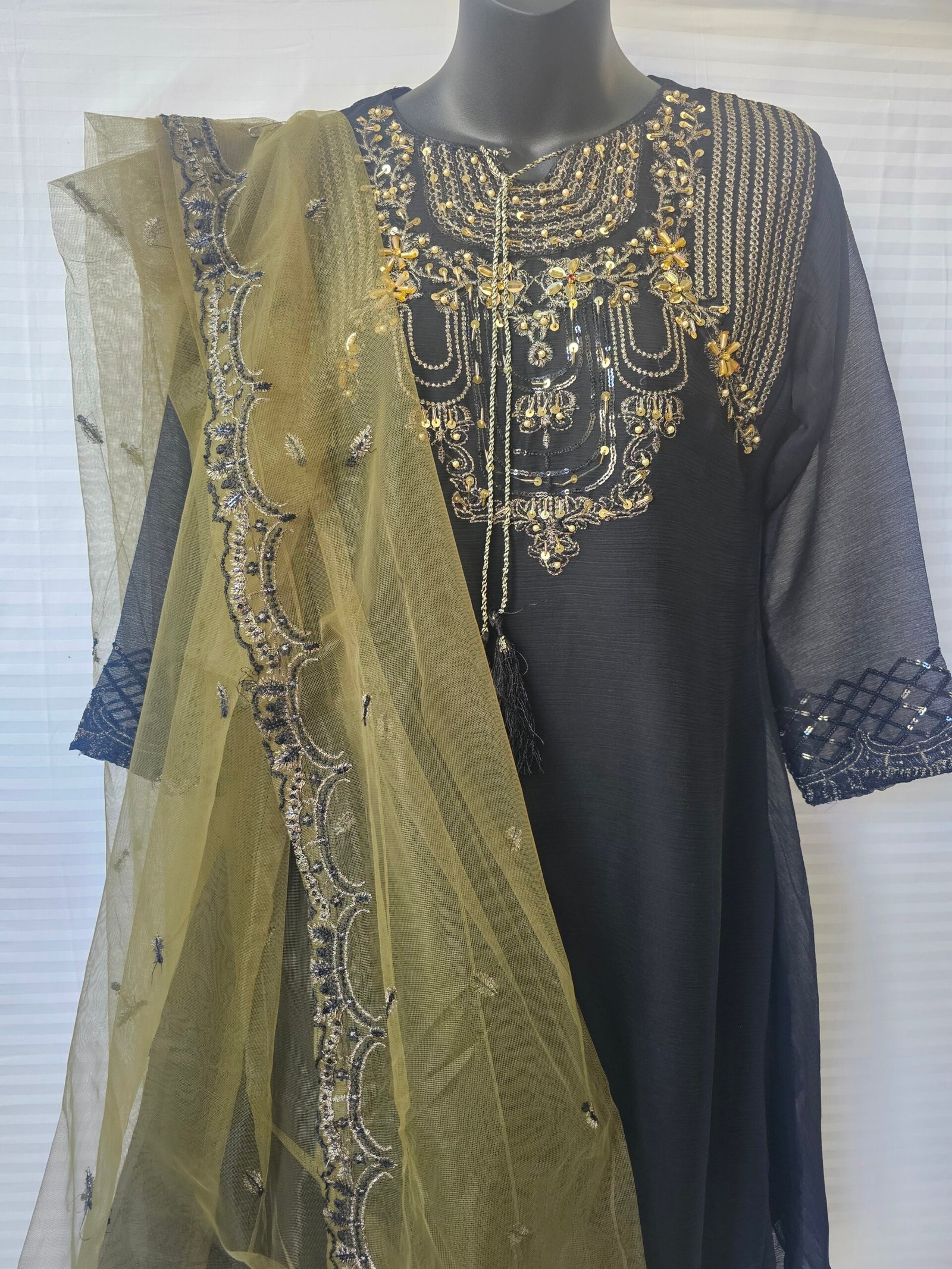 Paired with a matching embroidered dupatta, this ensemble is ideal for wedding ceremonies, festive evenings, or elegant dinners. Its petite sizing ensures comfort without compromising on traditional elegance.